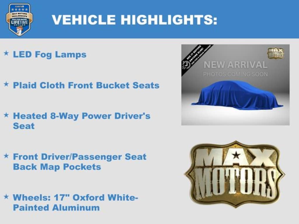 AM/FM Stereo, Convenience Package, Equipment Group 250A Standard Package, Ford Connectivity Package (1-Year Included), Front Driver/Passenger Seat Back Map Pockets, Heated 8-Way Power Driver's Seat, LED Fog Lamps, Plaid Cloth Front Bucket Seats, Premium Wrapped Steering Wheel, SiriusXM with 360L, SYNC 4 with Enhanced Voice Recognition, Wheels: 17" Oxford White-Painted Aluminum.